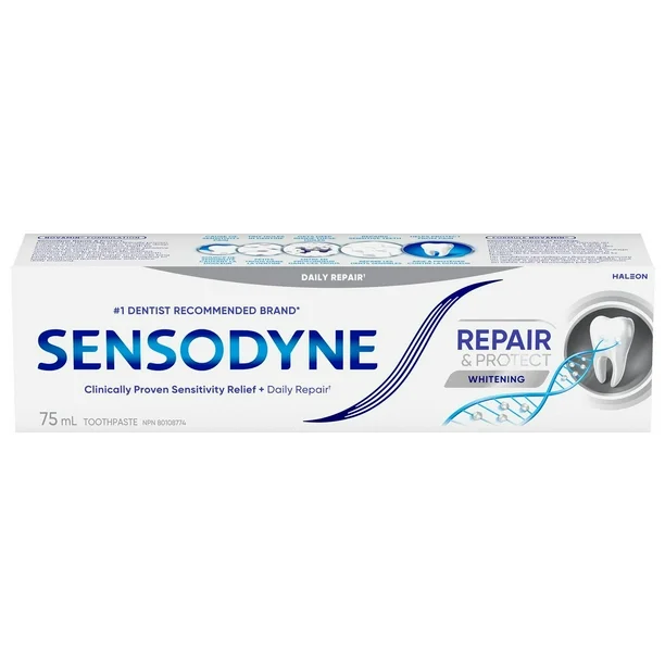 - Sensodyne Repair and Protect Whitening Toothpaste helps repair and strengthen sensitive areas of your teeth to provide lasting sensitivity relief and protection from pain while helping remove stains to return your teeth to their natural whiteness